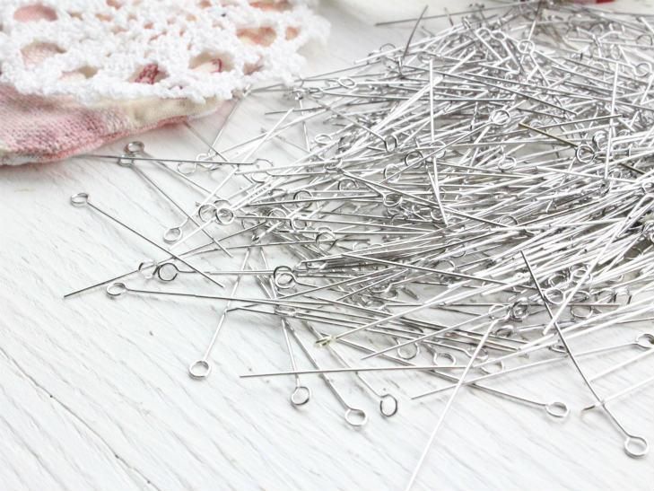 オリジナルのピアス・イヤリング・ブレスレット・ネックレス製作に欠かせないピンパーツ☆繊細なデザインのレシピにおすすめ!線径が細い9ピンをご紹介♪使い方・作り方は簡単◎お好みの天然石やパールに通して、丸ペンチ等の工具を使って先端を曲げるだけです。ピンの丸め方をマスターすると、座金やビーズモチーフ・ビジューを使った可愛いオリジナルチャームやめがね留めのビーズチェーンなどハンドメイドの幅がグーンと拡がりますよ。世界に一つだけの手作りアクセサリーで、ワタシらしさアピールしちゃおう♪※丸カン部分を開閉する場合は、上下にスライドではなく左右にスライドしてお使いください。線径が細く強度に弱い為、上下のスライドは推奨しておりません。開閉される場合には、恐れ入りますがご自身の判断の上でご利用をお願い致します。※同じ商品でも入荷時期等により、サイズ・色調・メッキ等の仕様に若干の変更・個体差がある場合がございます。※細かな擦り傷などのダメージがある商品が入ることがあります。※照明・モニターの関係上、多少お色味が変わる事がございます。※商品の特性上、曲がっているピンが含まれる場合があります。【内容詳細】9ピン 約400本【サイズ】全長:約30mm 線径:約0.5mm【カラー】シルバー/銀【素材】真鍮【メッキ】一般のメッキ紗や工房のパーツは商用利用が可能です♪ぜひ素敵なアクセサリーに加工して販売してください♪