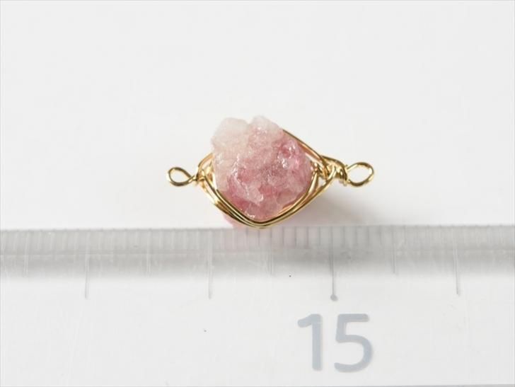 レッドトルマリンの天然石をゴールドのワイヤーで優雅にラッピングしたチャームです。アンティークな雰囲気や、ちょっと余所行きのイメージのパーツをお探しの方にオススメ!両端にカンが付いているので、つなぎパーツとしても使えます◎※同じ商品でも入荷時期等により、サイズ・色調・メッキ等の仕様に若干の変更・個体差がある場合がございます。※細かな擦り傷などのダメージがある商品が入ることがあります。※照明・モニターの関係上、多少お色味が変わる事がございます。【内容詳細】天然石チャーム ワイヤーラッピング チャーム レッドトルマリン 1個 1ヶ ワイヤーチャーム 繋ぎパーツ 2つ穴 多面体 天然石 アクセサリーパーツ パーツ【サイズ】約20×10mm 石サイズ:約10×8.5mm カンの内径:約1.3mm【カラー】レッドトルマリン【素材】天然石作家さん応援!送料無料のビジネスパックはこちら!形、カラーなどバリエーション一覧で購入したい方はこちら!紗や工房のパーツは商用利用が可能です♪ぜひ素敵なアクセサリーに加工して販売してください♪