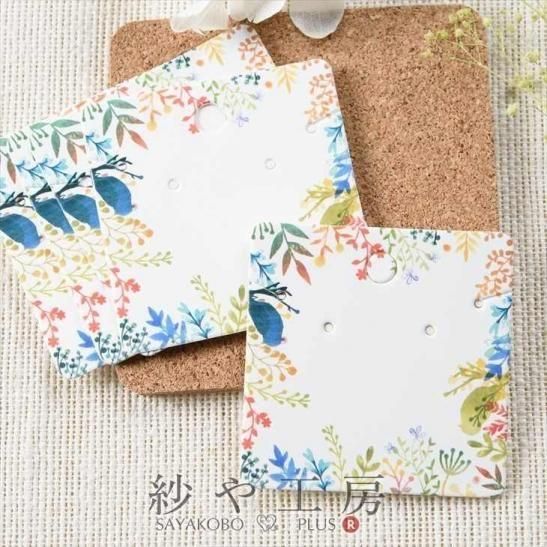 台紙 カラーボタニカルと小鳥 ホワイト 60mm 50枚 アクセサリー台紙 ラッピング アクセサリー ピアス イヤリング 包装資材 ディスプレイ 約6cmパーツ