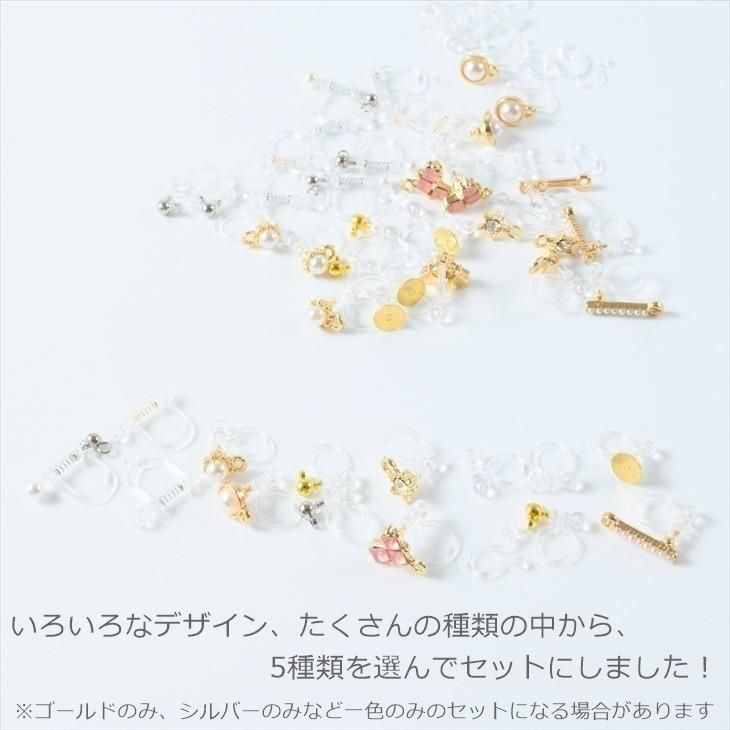 シンプルなクリップタイプから、丸玉や平皿付き、バネタイプのものなど定番商品に加え、モチーフ付きで華やかなデザイン性のあるものまで、たくさんの種類の中から厳選した5種類を各2ペア、全部で10ペアセットにしてお届け!