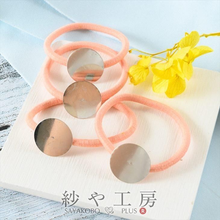 平皿が付いたシンプルなリングゴムです♪接着台にお好きなパーツを取り付けてオリジナルヘアアクセをつくってみてね♪※同じ商品でも入荷時期等により、サイズ・色調・メッキ等の仕様に若干の変更・個体差がある場合がございます。※細かな擦り傷などのダメージがある商品が入ることがあります。※照明・モニターの関係上、多少お色味が変わる事がございます。【内容詳細】ヘアゴムパーツ 平皿付き 直径約20mm サーモンピンク 20個 約2cm 貼り付け 接着台付き【サイズ】平皿:直径約20mm ゴム:直径約50mm【カラー】サーモンピンク【素材】ポリエステル/鉄(変色加工済み)【メッキ】形、カラーなどバリエーション一覧で購入したい方はこちら! 紗や工房のパーツは商用利用が可能です♪ぜひ素敵なアクセサリーに加工して販売してください♪