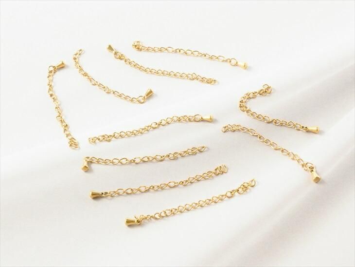 10本入りのアジャスターチェーン!お手持ちのチェーンに付けるだけで簡単にお好みの長さに調節可能になります!誰でも簡単にネックレスやブレスレットが作れちゃいます♪アレルギー対応なのも嬉しいポイント!紗や工房のパーツは商用利用が可能です♪ぜひ素敵なアクセサリーに加工して販売してください♪※ご注意ください※すべての方に金属アレルギー反応が出来ないこと(アレルギーフリー)を保証するものではございません。皮膚に異常を感じた場合は直ちにご使用を中止し、専門医にご相談ください。※夏場や運動時等の汗をかく場合には、変色やアレルギー反応がでやすくなる場合がございます。※症状が出た場合は責任を負いかねますことをご了承ください。※同じ商品でも入荷時期等により、サイズ・色調・メッキ等の仕様に若干の変更・個体差がある場合がございます。※細かな擦り傷などのダメージがある商品が入ることがあります。※照明・モニターの関係上、多少お色味が変わる事がございます。【内容詳細】アジャスター 316L ステンレス ニッケルフリー 変色防止加工済 全長55mm ゴールド 10本 約5.7cm 【サイズ】全長:約55mm 1コマ:約3.5×2.6mm 線径:約0.5mm 【カラー】ゴールド【素材】316Lステンレス 変色防止加工済【メッキ】ニッケルフリー(ノンニッケルメッキ。メッキ工程にニッケルは使われておりません。※工場は他のメッキも行っている為、工程で微量に混入してしまう可能性はございます。)