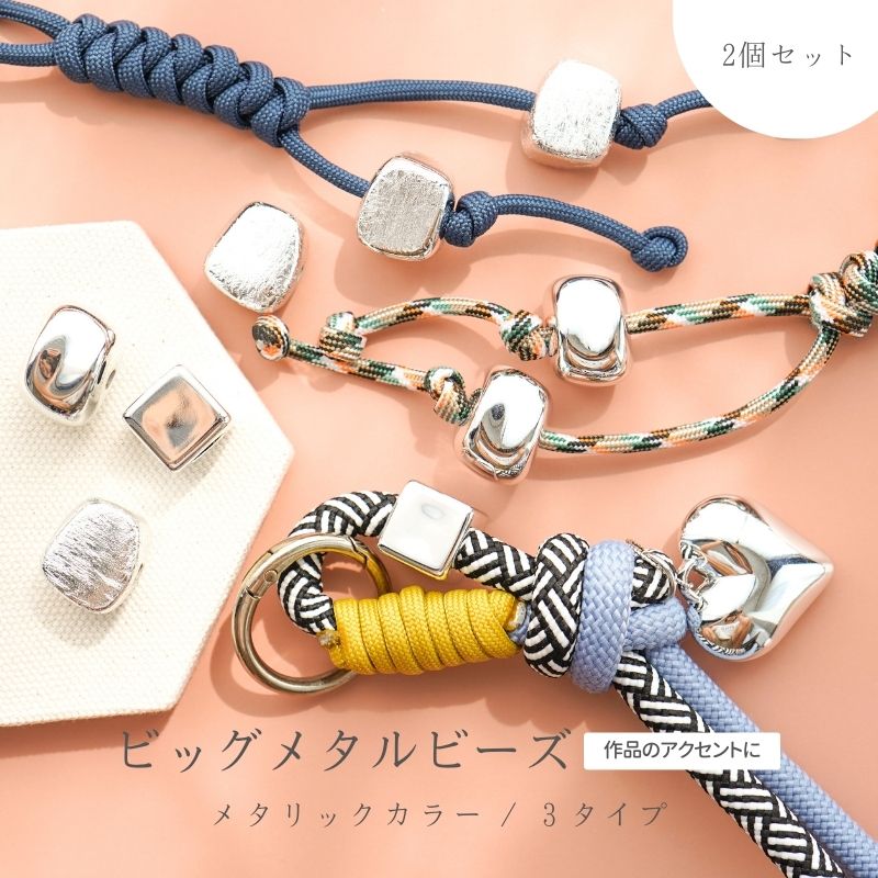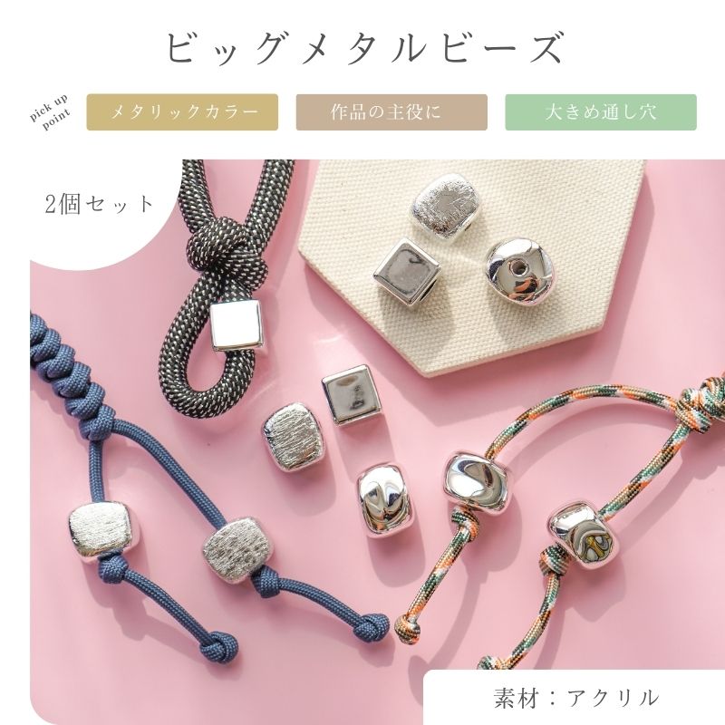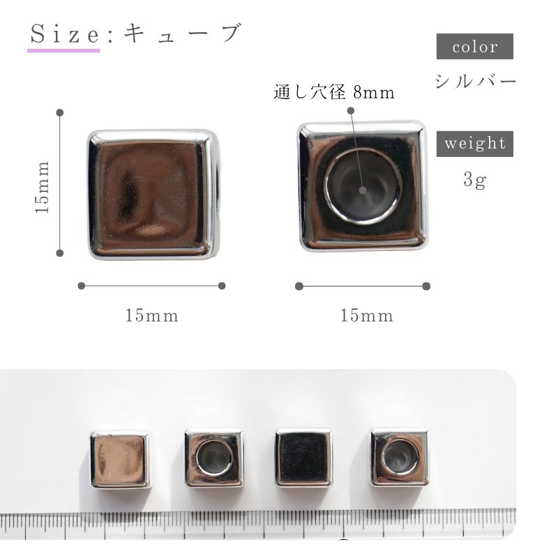 ビッグメタルビーズ アクセサリー パーツ シルバー 2個 キューブ ユニーク ビーズ 手芸 通し穴 メタル 大きい メタルカラー 問屋