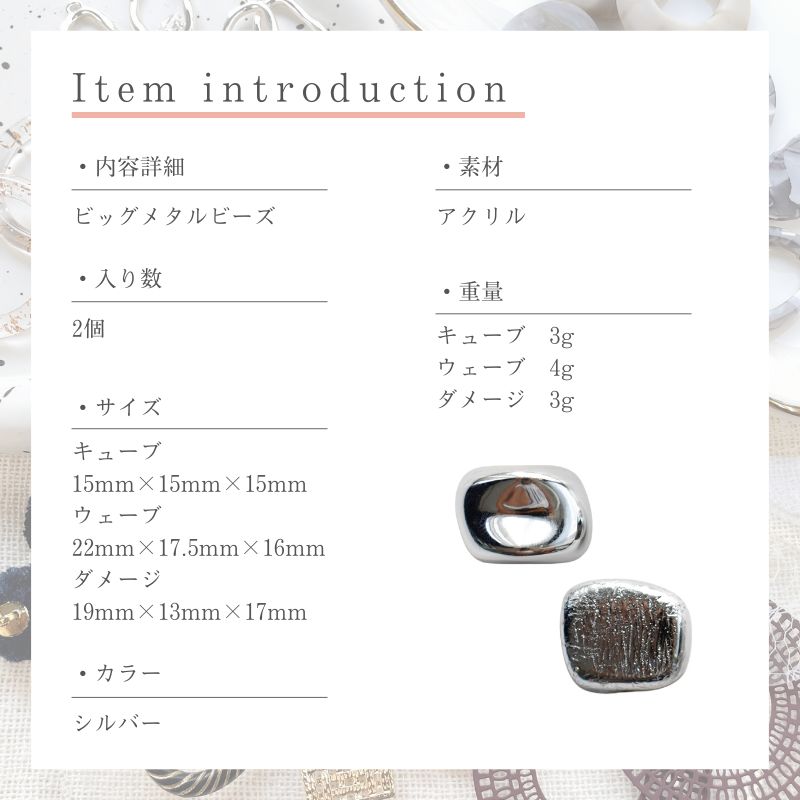 【内容詳細】ビッグメタルビーズ シルバー 2個 キューブ ユニーク