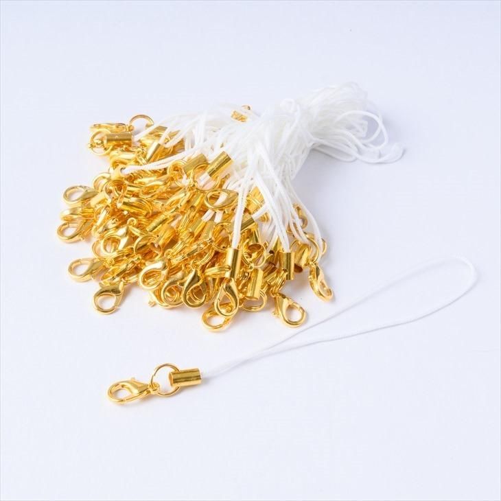 ストラップパーツ カニカン付き 半二重丸カン ゴールド金具 ホワイト 全長約90mm 紐長さ約70mm 約50個 50本 紐 ひも キーホルダー 約9cm アクセサリーパーツ