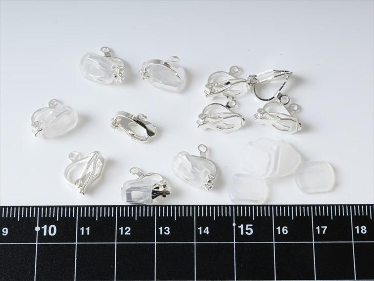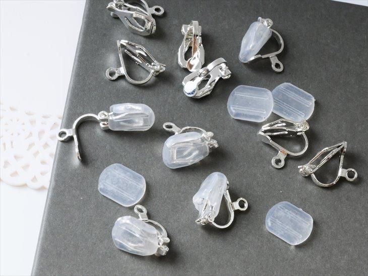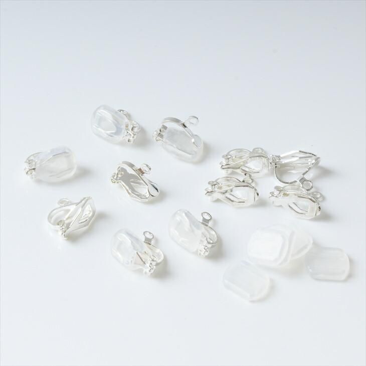 イヤリングパーツ クリップ カン付き シリコンカバー付 ホワイトシルバー 10mm 5ペア 10個 ノンホールピアス 約1cm ハンドメイド アクセサリーパーツ