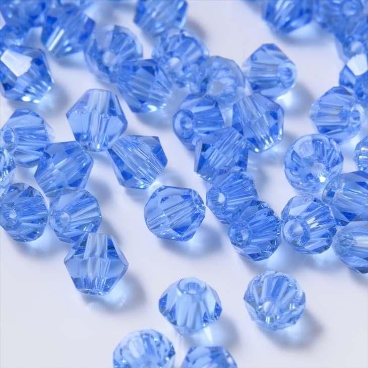 ハンドメイドアクセサリー・ビーズ手芸で大活躍☆16面カットのガラスビーズです!使い方・作り方レシピは簡単☆テグス/紐を通して留め金具を取り付けるだけで、オリジナルのネックレス・ブレスレットが作れちゃいます。9ピン/Tピンを使ったイヤリング・ピアスもおすすめ♪動くたびにビーズ表面の繊細なカットがキラキラと光を反射して高級感抜群です。スワロフスキーと組み合わせたサンキャッチャー製作も人気ですね。高級ガラス素材を使用していますので、輝きは一級品!定番カラーから偏光タイプまで豊富なバリエーションをご用意しましたので、お使いの天然石(パワーストーン)やチャームに合わせてお好きな色をセレクトしてくださいね!※同じ商品でも入荷時期等により、サイズ・色調・メッキ等の仕様に若干の変更・個体差がある場合がございます。※細かな擦り傷などのダメージがある商品が入ることがあります。※照明やモニターの関係上、多少お色味が変わる事がございます。※粒によってサイズ・色調に若干のばらつきがございます。※小さなカケやバリがみられる場合がございます。【内容詳細】ガラスカットビーズ/高級クリスタルカットビーズ 16面カット 約95個【サイズ】直径:約4.5mm【カラー】ライトサファイヤ/Light Sapphire【素材】ガラス【本体重量】約9g紗や工房のパーツは商用利用が可能です♪ぜひ素敵なアクセサリーに加工して販売してください♪形、カラーなどバリエーション一覧で購入したい方はこちら!